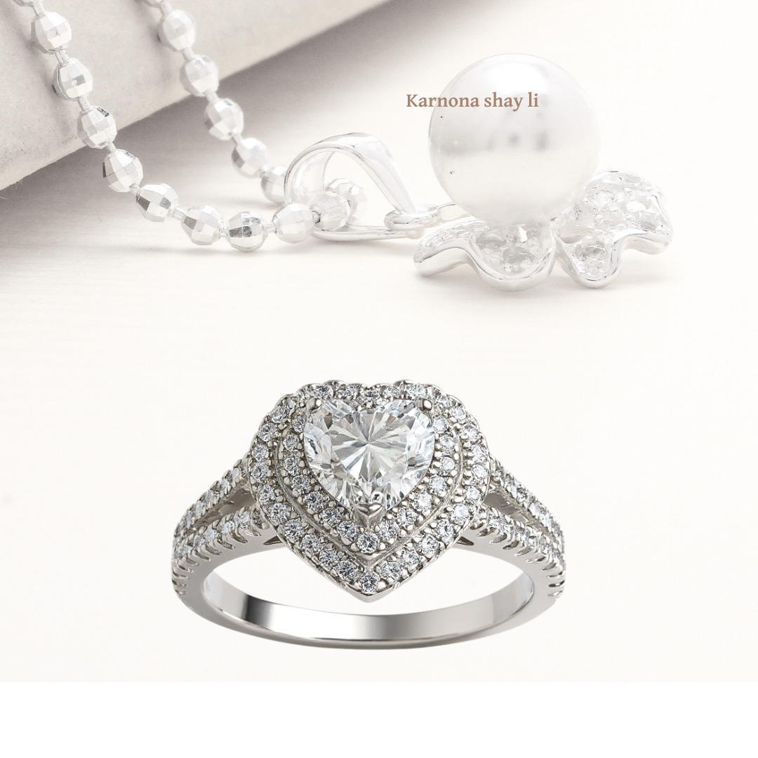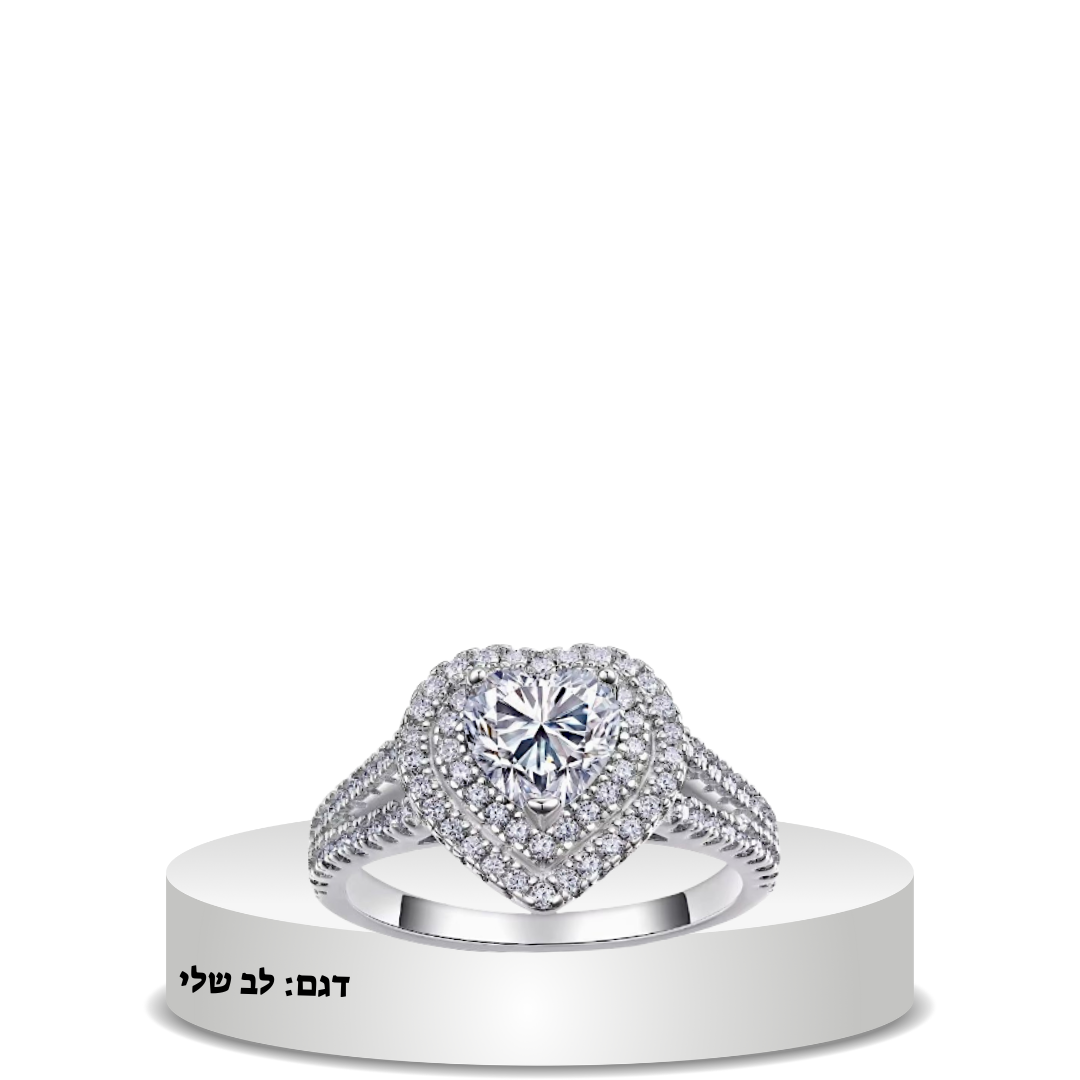 טבעת לב משובצת אבני מעבדה