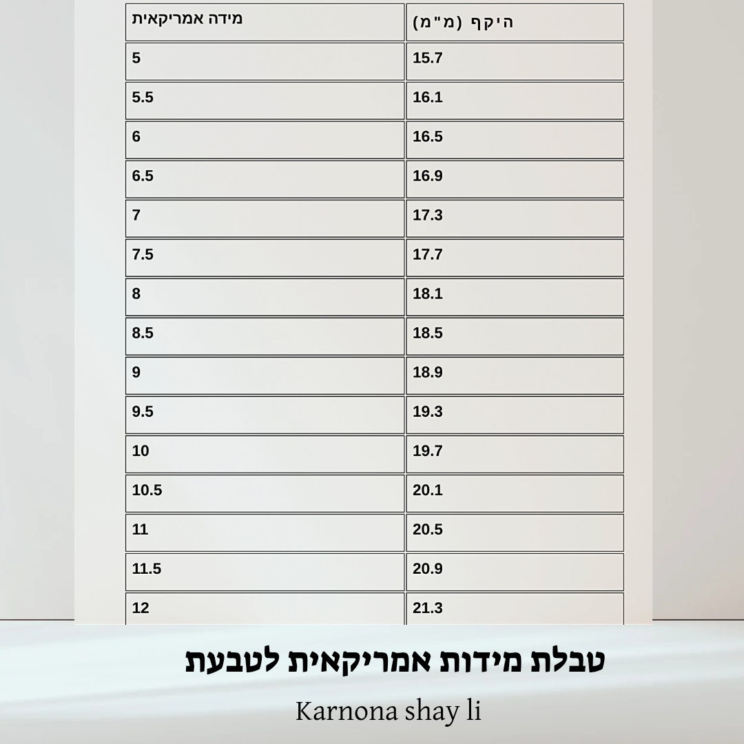 המידות באתר אמריקאיות.