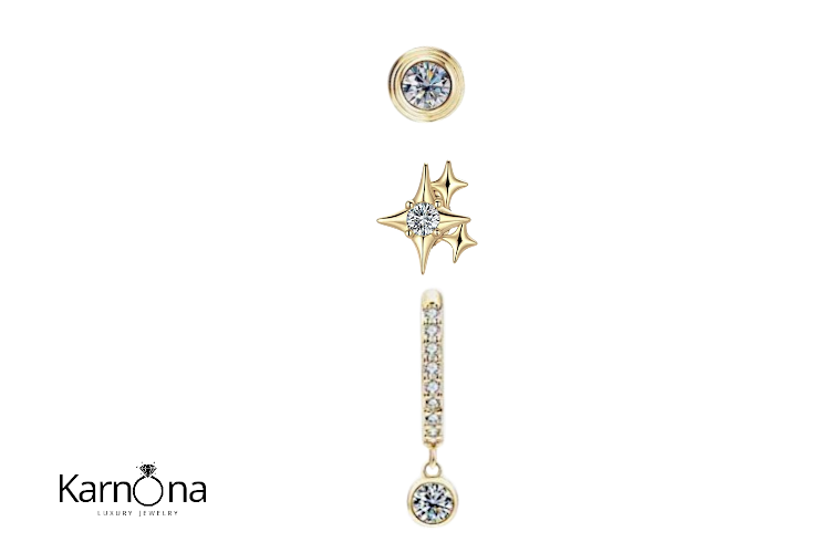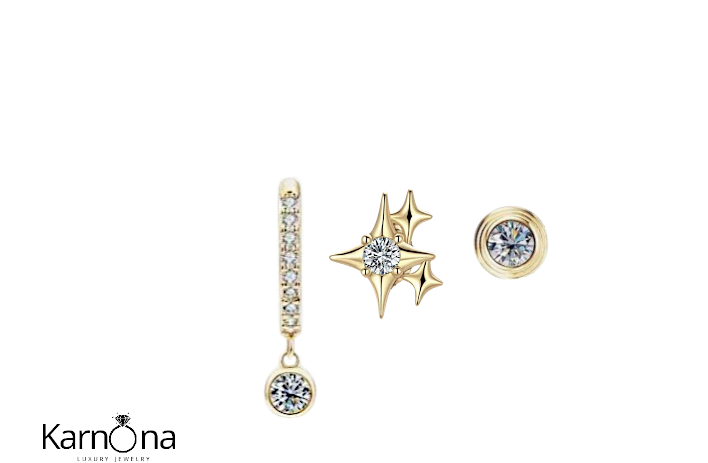 סט 3 עגילים זהב משובץ אבני מעבדה