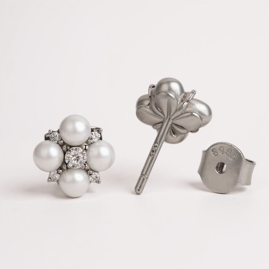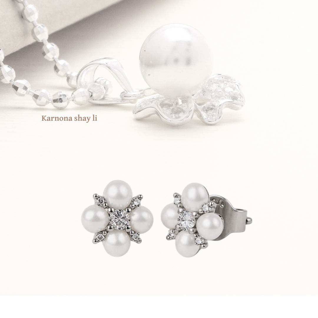 כמות של עגילים פנינה בשיבוץ אבן מעבדה