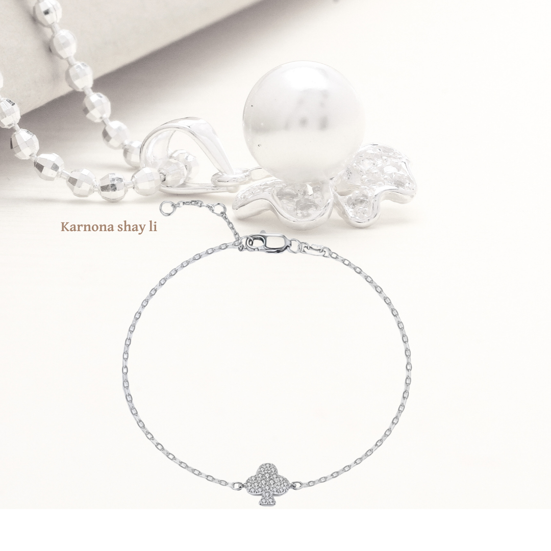 / צמיד עדין תלתן משובץ אבני מעבדה