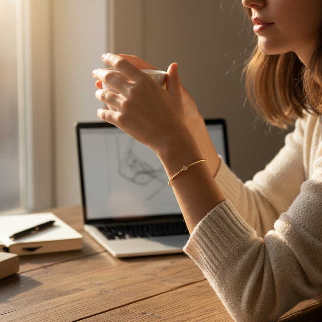 צמיד עיגולים כסף משובץ אבן מעבדה