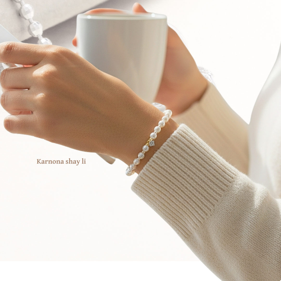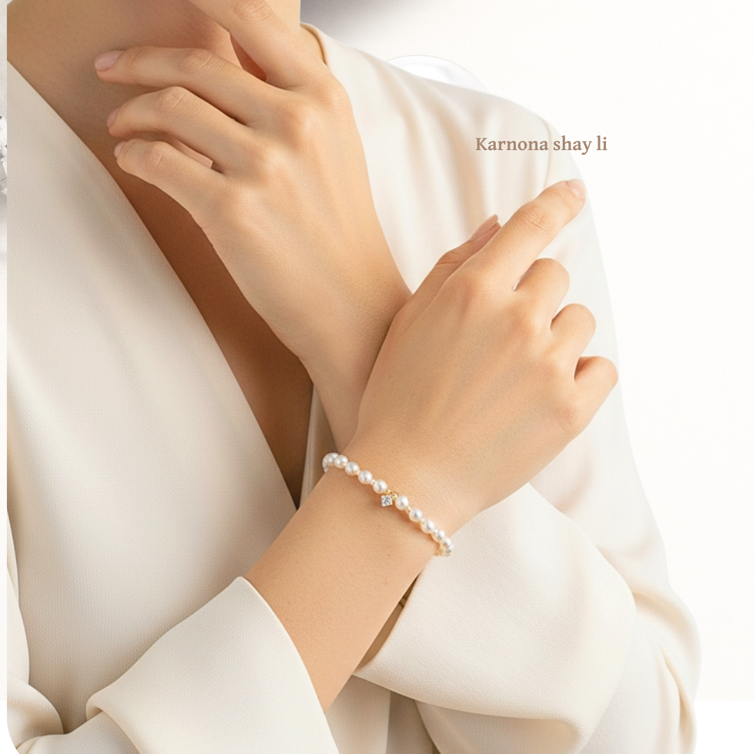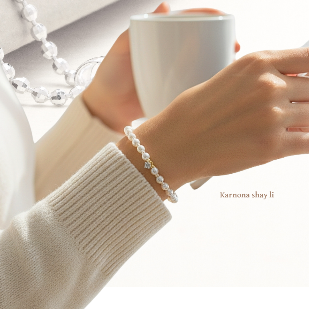צמיד פנינים אבן מעבדה